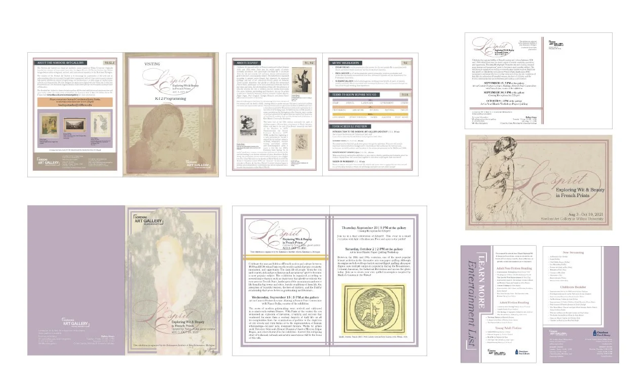 I worked at the Sordoni Art Gallery at Wilkes University from Spring 2019 during my freshman year all the way up until graduation in May 2022. I was also awarded the Student Fellow position for the 2021-22 academic year, giving me the opportunity to create brand identities for multiple shows and programs, title walls, mailers and print pieces, and social media assets among many others. The shows I worked on during my time as fellow are L’Esprit: Exploring Wit & Beauty in French Prints, Juan Logan: Creating & Collecting, and State: Obvious/Not So by Dan R. Talley. For Talley, I was also able to design a full exhibition catalog.